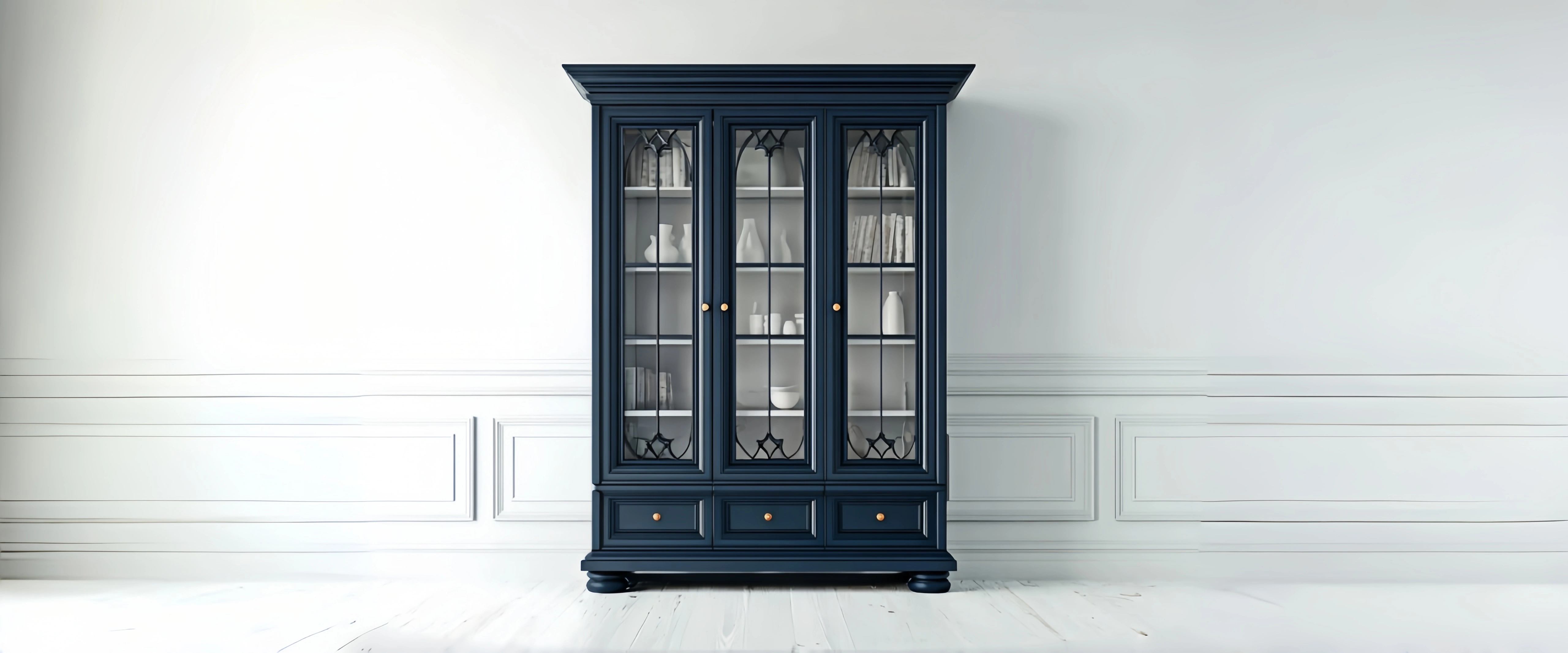 Display Cabinet solid wood and glass 90x40x180 cm - grey - classic storage design