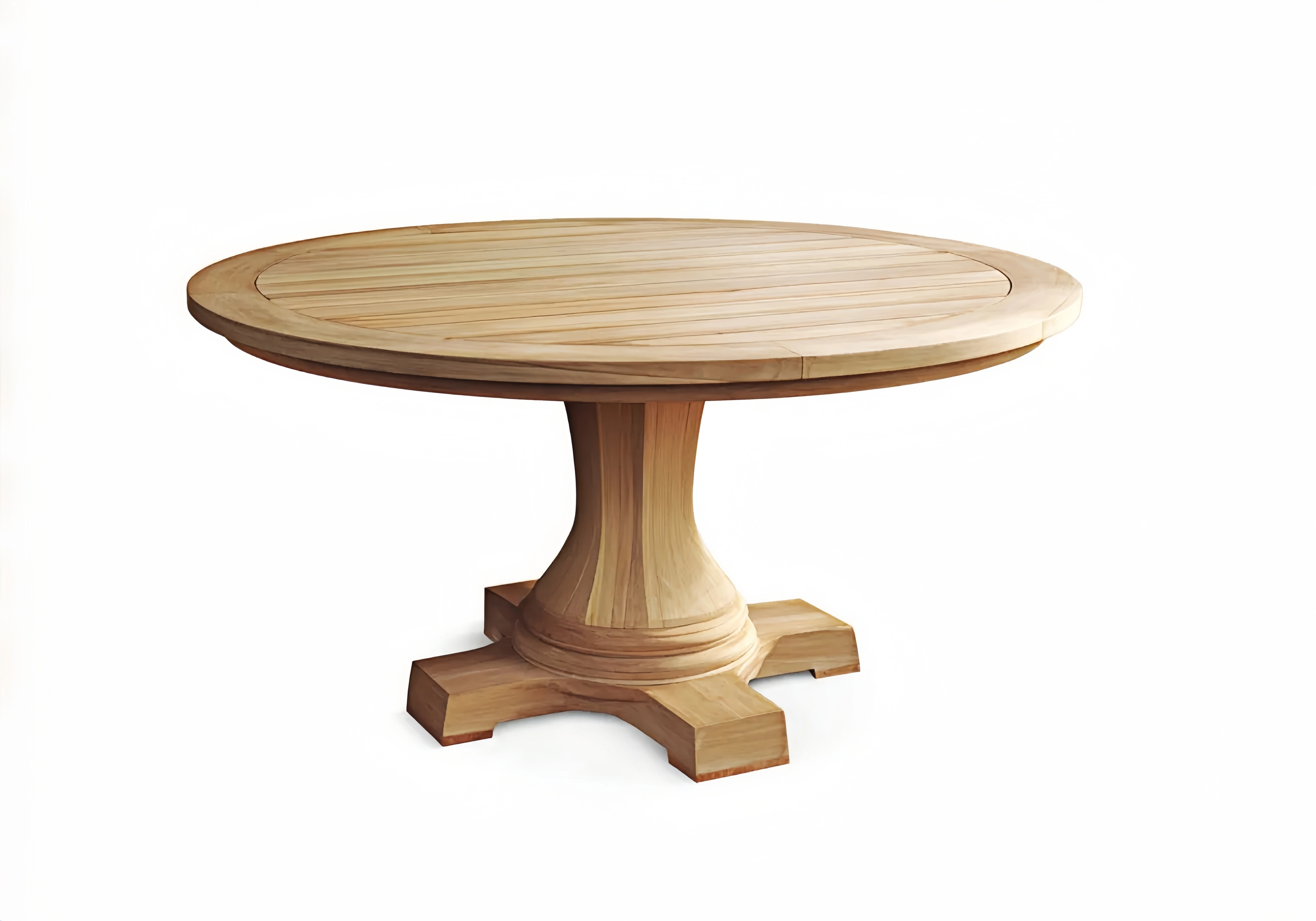 Garden Table Solid Wood Round Pedestal Base 130x130x75 cm - Brown - Outdoor Dining - Classic Natural Design